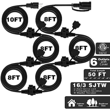 KASONIC Outdoor Extension Cord 50 FT, Evenly Spaced 6 Outlets Plugs, 16/3 SJTW