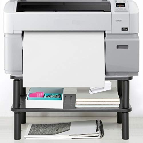 - SLEEK, FASHIONABLE, ELEGANT DESIGN makes this monitor riser a very nice accessory for your desk and office. Make of durable black steel. It’s smooth and feels great with vented top surface. Holds up to 44 pounds including most monitors.