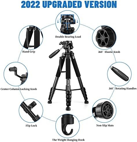 Tripod Camera Tripods, 74″ Tripod for Camera Cell Phone Video Photography, Heavy