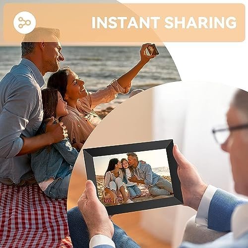 - [Privacy & Safe]: Our cloud digital frame using Secure Device Grid (SDG) for safe end to end encrypted communication, Smart Phone App “Frameo” is only used to share photos or videos and can’t get into your frame to edit your private photos or videos