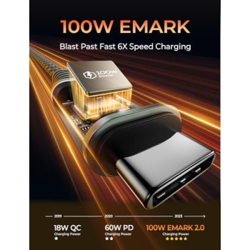 AINOPE USB C to USB C Cable 100W 2-Pack 6.6FT, Durable USBC to USBC Cable Cord